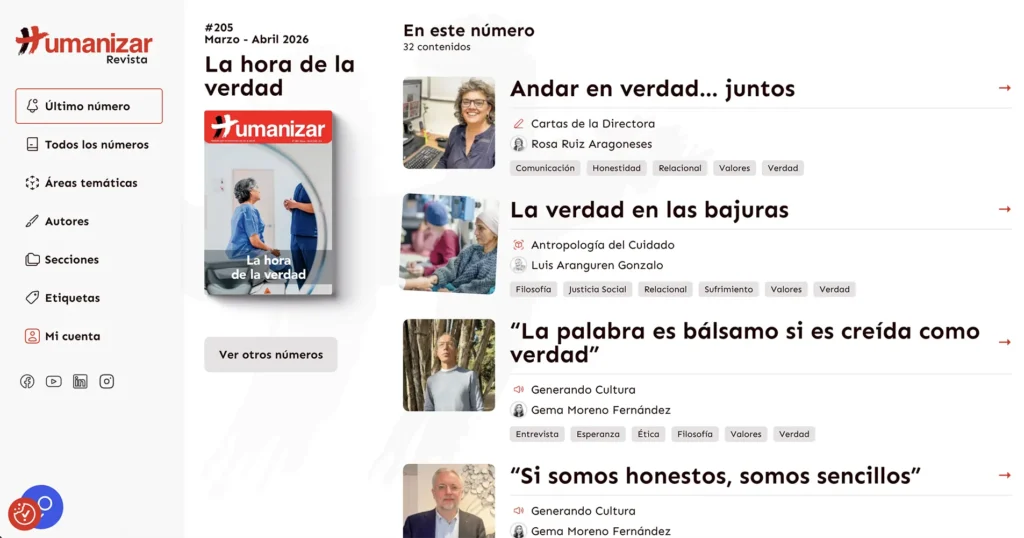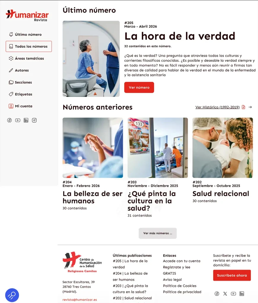 La plataforma se ha diseñado para crecer con la revista: permite seguir incorporando nuevos números y números antiguos, así como experimentar con formatos digitales y, en una siguiente fase, integrar espacios de patrocinio para entidades vinculadas a la humanización de la salud que quieran apoyar el proyecto.